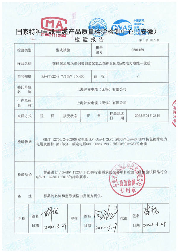 上海滬安電纜(無錫)有限公司/ 檢驗檢測報告